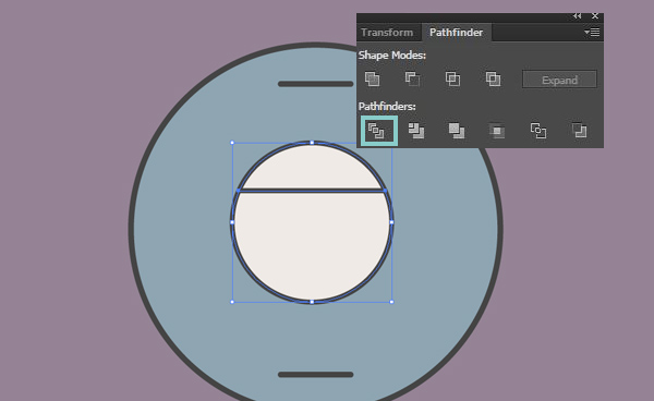 Выделите маленький круг и пересекающую его линию, и в палитре Pathfinder/Обработка контура кликните по указанной ниже иконке.