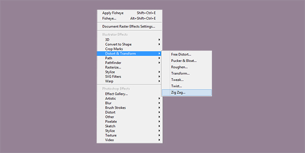 Инструментом Direct Selection/Прямое выделение (A) выделите обе верхние точки, кликните по ним правой кнопкой, и выберите Join/Соединить. Инструментом Pen/Перо (P) нарисуйте две линии длиной примерно в 27 px. Выделите обе линии и примените к ним эффект Zig Zag/Зигзаг c количеством в 4 Ridges for segment/Пиков на сегмент.