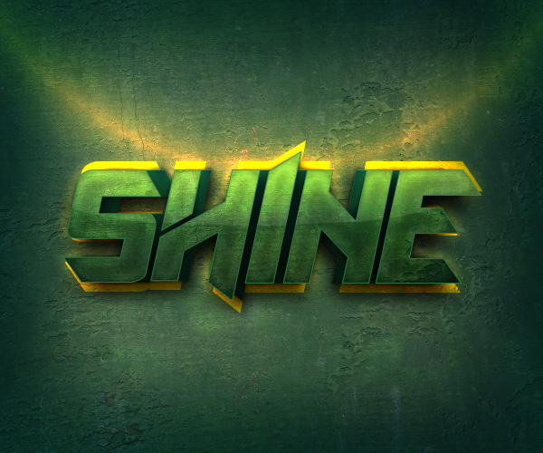 Введите ваш текст, в нашем случае это слово Shine. Используйте шрифт Amaz Obitaem Ostrov Italic размером в 180 pt. Для лучшего качества укажите шрифту режим Sharp/Резкость. Переименуйте слой в Shine Top.