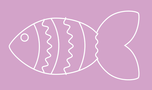 96. Укажите фигуре отсутствие заливки и обводку белого цвета. Нарисуйте получившейся рыбке круглый глаз.