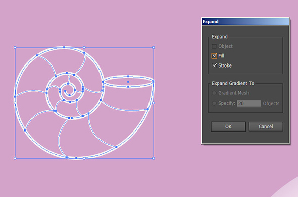 104. Выделите всю рыбу, затем в меню выберите Object>Expand Appearance/Объект>Разобрать оформление.
