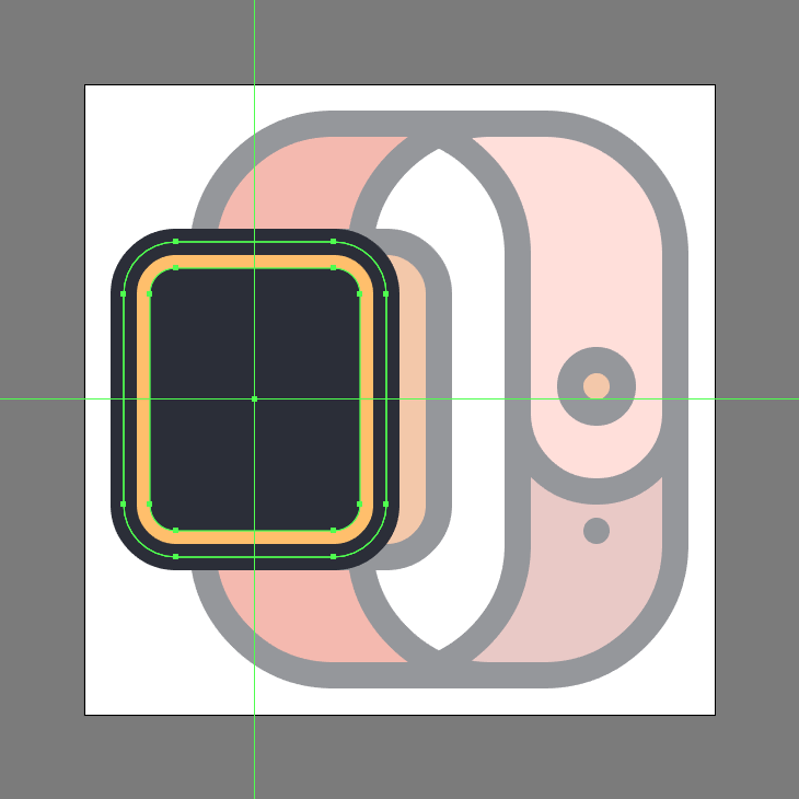 Дублируйте нижнюю (полную) часть ремешка (Control-C > Control-F), кликните по ней правой кнопкой и выберите Transform > Reflect > Vertical/Трансформировать>Отразить>Вертикально. Переместите отраженную копию как показано ниже и укажите ей цвет заливки #EA755E.