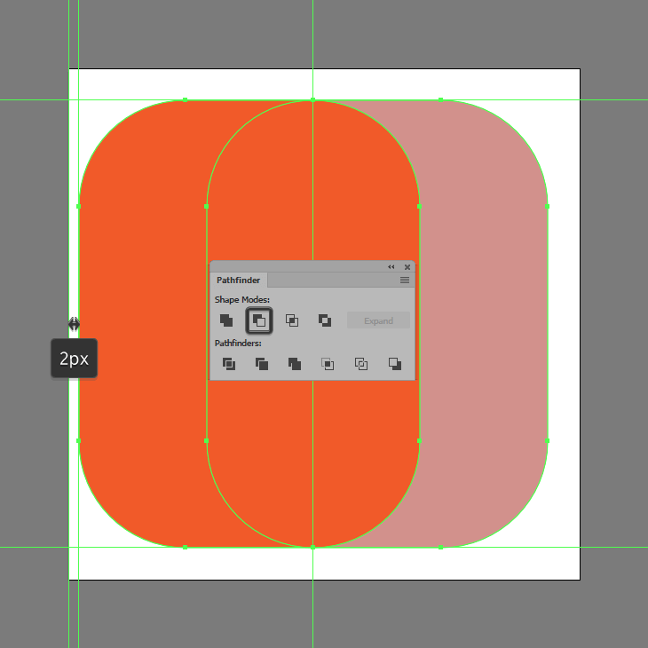 Создайте копию прямоугольника (Control-C > Control-F) и переместите верхнюю копию как показано ниже. Выделите обе фигуры и в палитре Pathfinder/Обработка контура кликните по иконке Minus Front/Минус верхний.