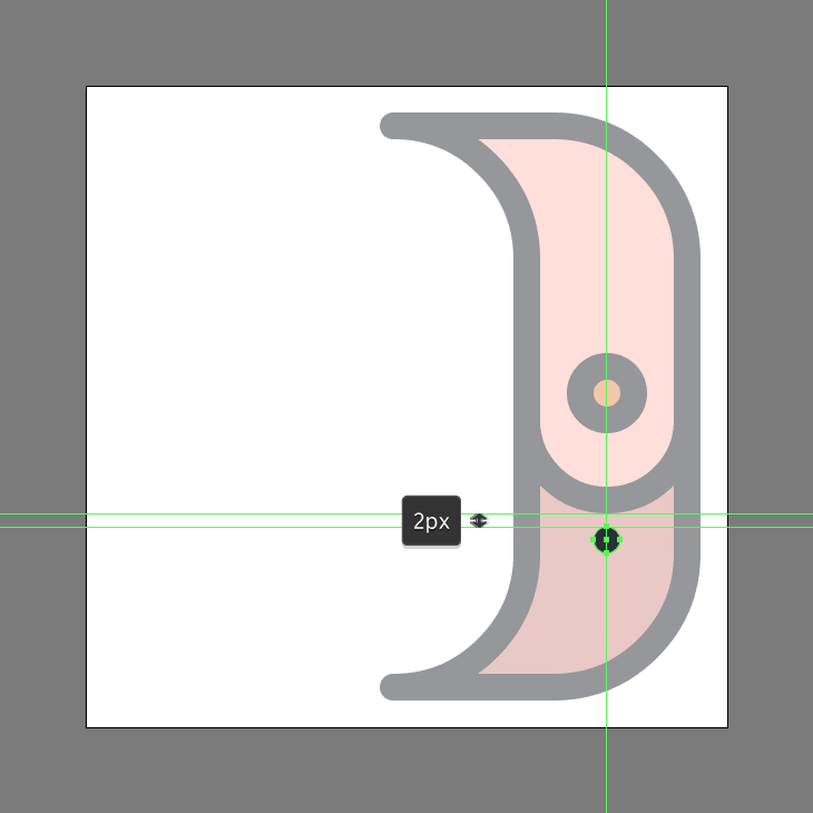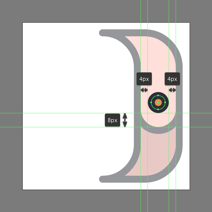 Рисуем застежку. Для этого нарисуйте круг размером 8 x 8 px (#E89054) с обводкой толщиной в 4 px (#262A35). Поместите круг как показано ниже.