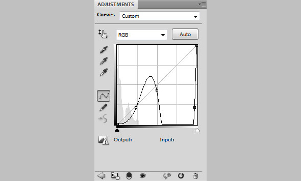 В палитре Layers/Слои кликните по иконке Создайте новый корректирующий слой или слой-заливку/Create new fill or adjustment layer (она находится в нижней части палитры). Выберите тип Curves/Кривые и настройте их как показано ниже.