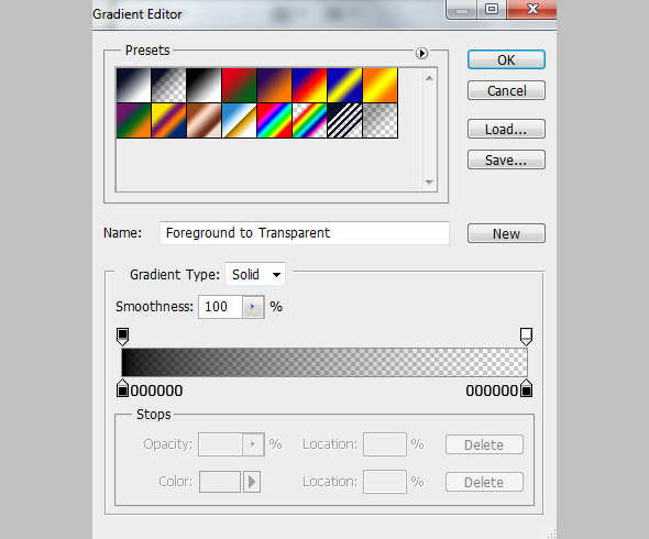 Создайте новый слой и укажите ему стиль слоя Gradient Overlay/Перекрытие градиента.