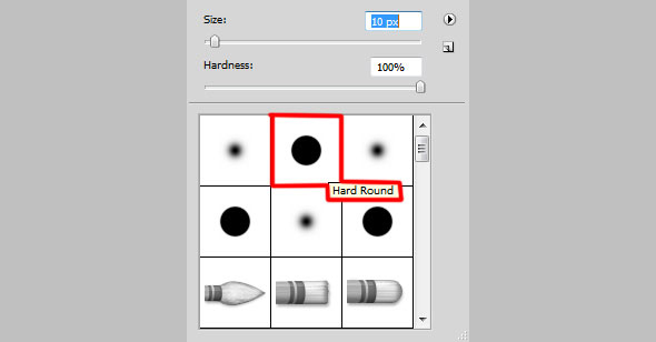 Создайте еще один слой и кистью Hard Round/Круглая жесткая белого цвета добавьте еще кружочков. Также меняйте параметры кисти.