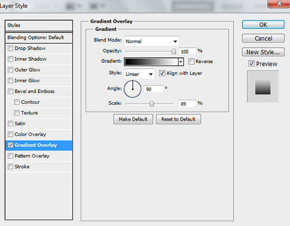 Укажите ему параметр Fill/Заливка в 0%. Дважды кликните по иконке слоя в палитре Layers/Слои, чтобы указать ему Layer style/Стиль слоя. Выберите Gradient Overlay/Перекрытие градиента.
