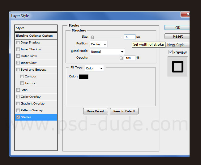 Вернемся к слою Sparkler 2. Для начала укажите ему Fill/Заливку в 0%. Добавьте Stroke/Обводку в 10px при помощи одноименного стиля слоя.