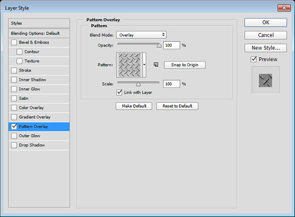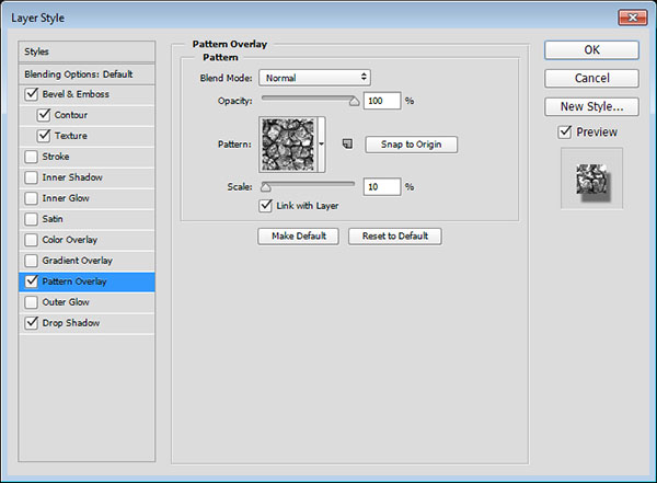 Укажите стиль слоя Pattern Overlay/Перекрытие узора: