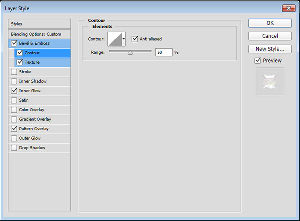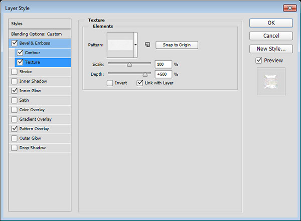 Эти стили для второго слоя добавят красок благодаря перекрытию узора и сделают эффект более сверкающим и объемным, благодаря тиснению.