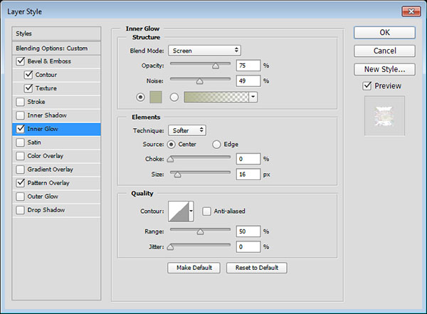 Стиль слоя Inner Glow/Внутреннее свечение: