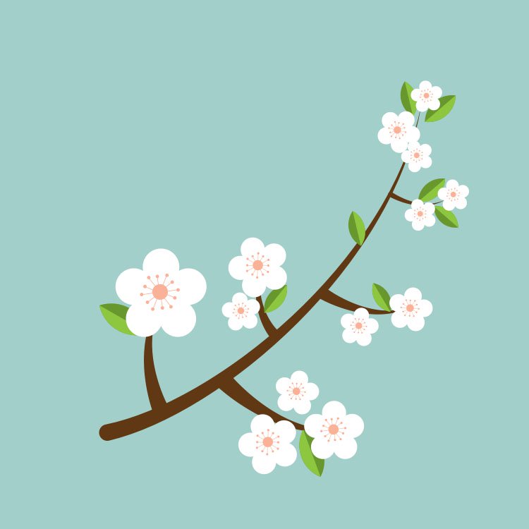 Нарисуйте веточку инструментом Pen/Перо и расположите на ней ваши цветы. Украсьте веточку листьями.