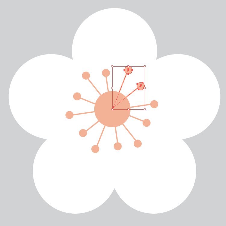 При помощи инструмента Line Segment/Отрезок линии (\) нарисуйте тычинку. Укажите линии толщину обводки в 1pt. На конце линии добавьте маленький круг.