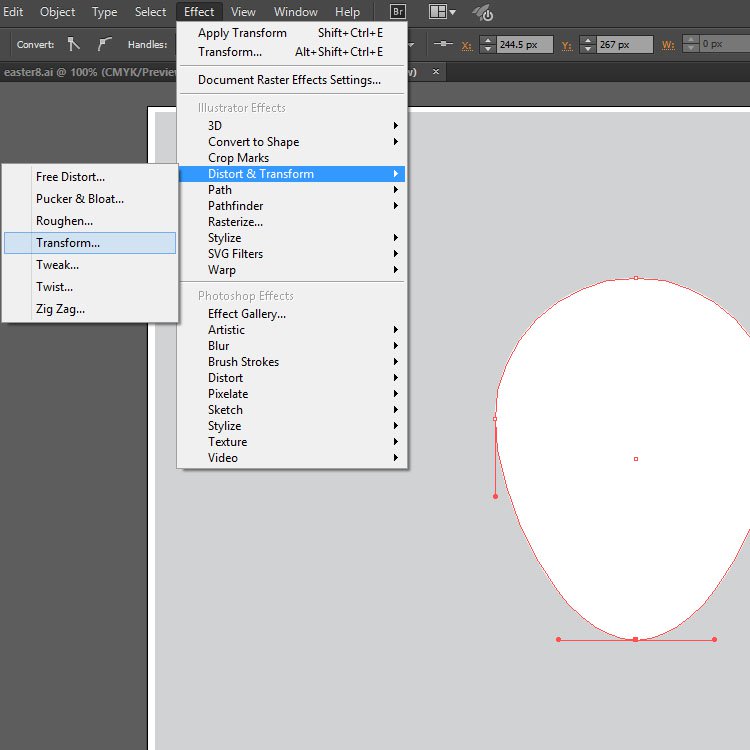 Не снимая выделения с фигуры, выберите в меню Effects -> Distort & Transform -> Transform/Эффект>Искажение и трансформация>Трансформация