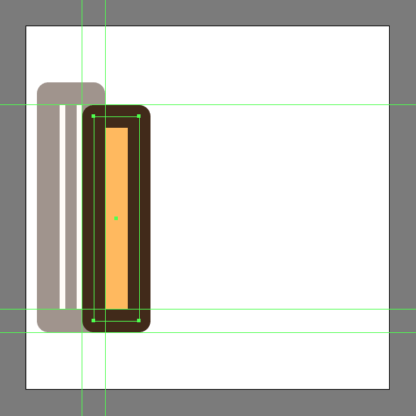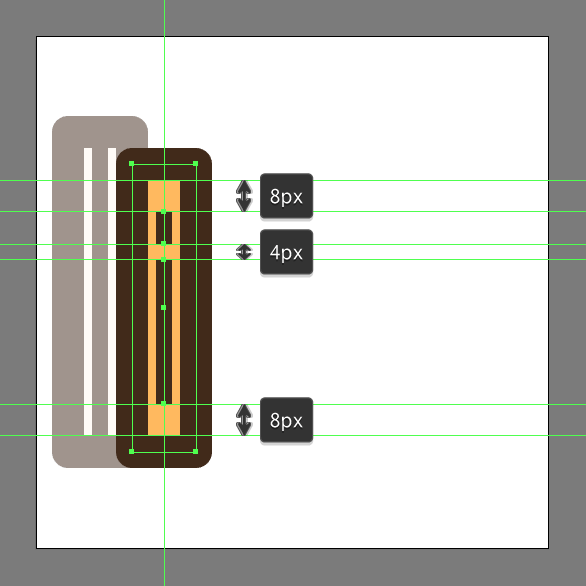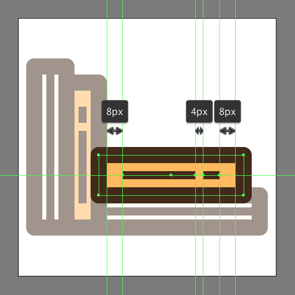 Рисуем вторую книгу. Для этого создайте прямоугольник размером 16 x 72 px (#FFBA5F) с обводкой толщиной в 8 px (#3F2514). Поместите вторую книгу прямо рядом с первой на на одной горизонтали.