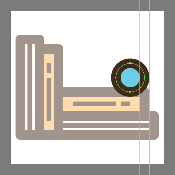 С книгами закончили. Теперь нарисуем пару очков, которые лежат на стопке книг. Для этого инструментом Ellipse/Эллипс рисуем круг размером 24 x 24 px (#6CCFE5) со стандартной обводкой.