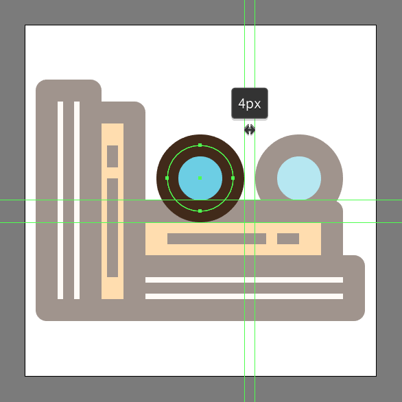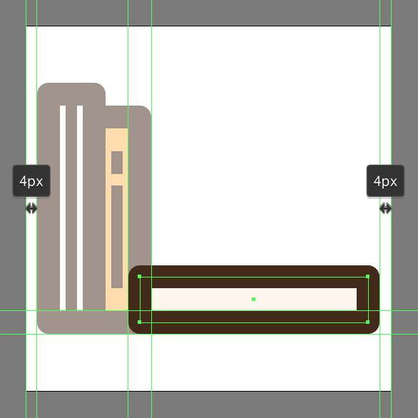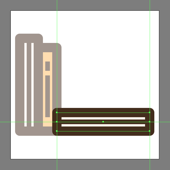Нарисуйте две линии длиной в 8 px и в 36 px. Это будут заглавия книг. Укажите линиям толщину в 4 px (#3F2514) и расположите их как показано ниже. Выделите все элементы, составляющие вторую книгу и сгруппируйте их (Control-G).