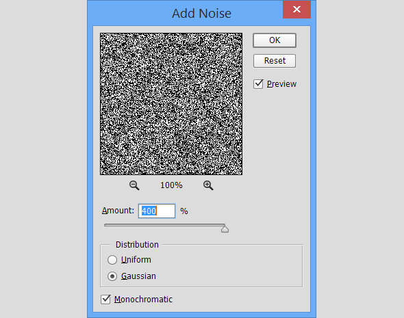 - В меню Filter/Фильтр выберите Noise -> Add Noise/Шум>Добавить шум