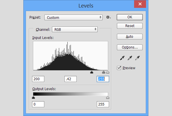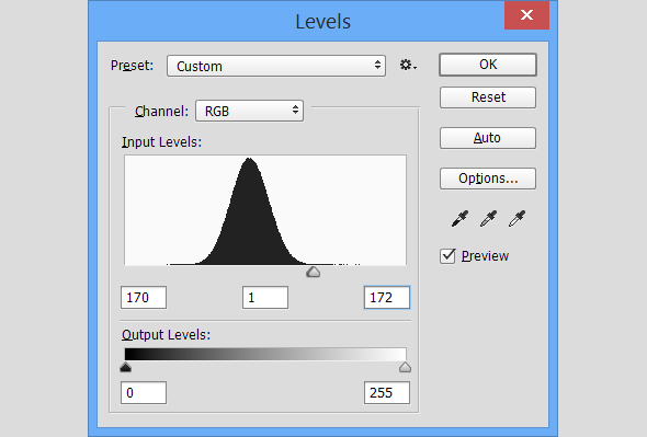 - В меню Image/Изображение выберите Adjustments -> Levels/Коррекция>Уровни