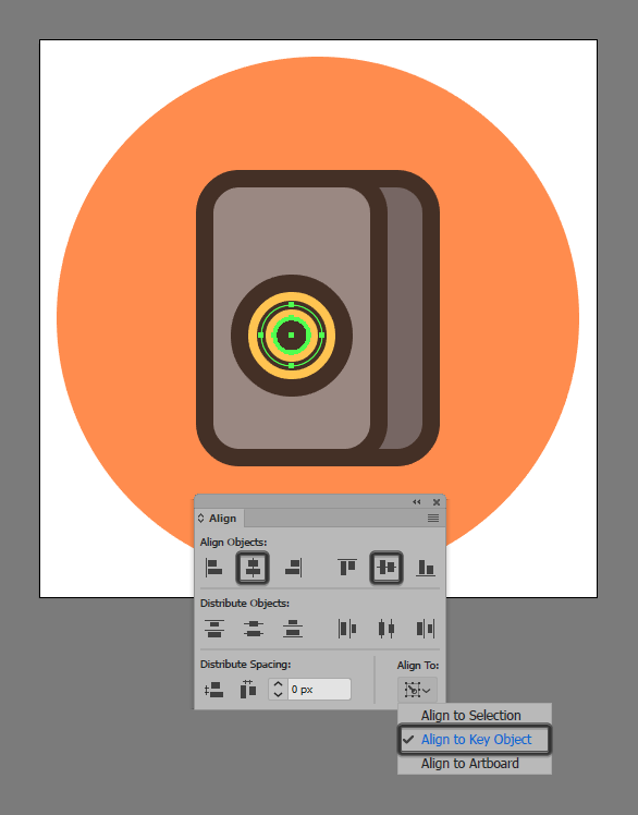 Создайте еще один круг внутри большого круга. Укажите ему размер 14 x 14 px, обводку толщиной в 2 px и цветом #422C21. Выровняйте этот круг по центру большого.