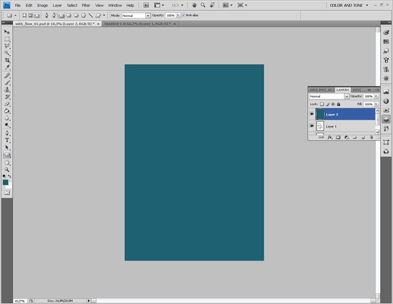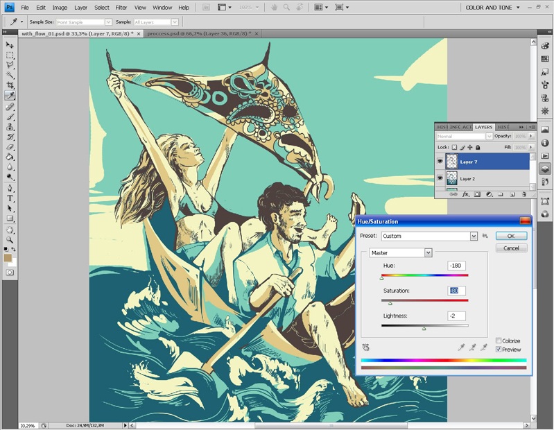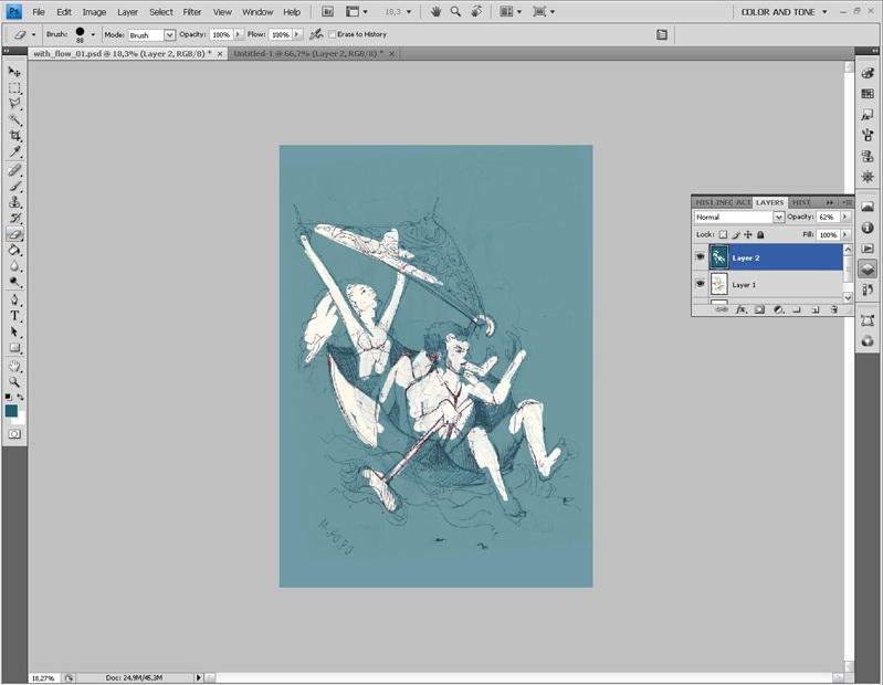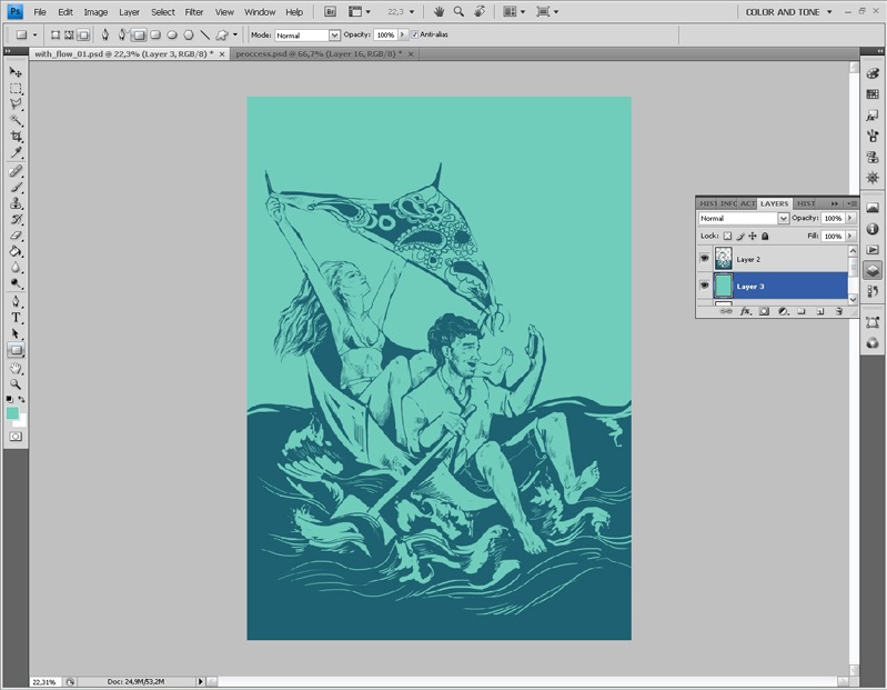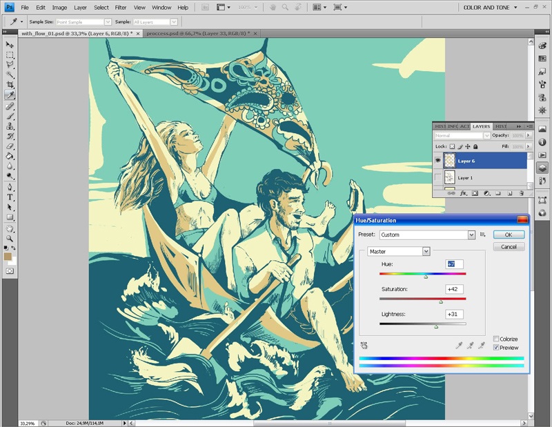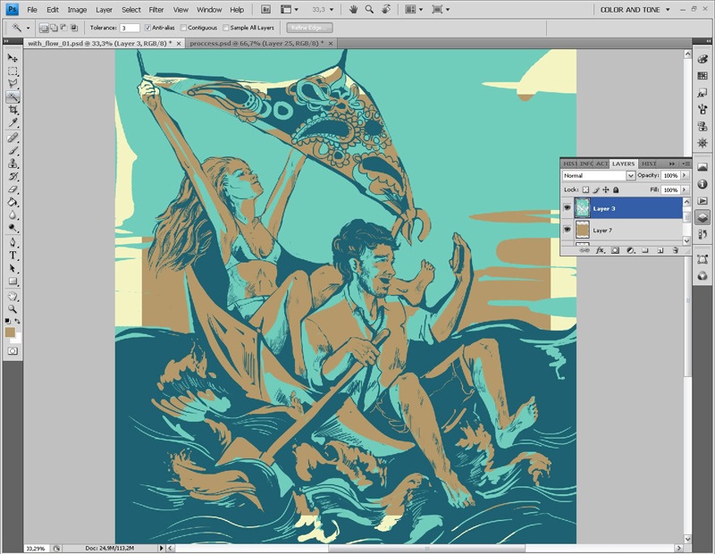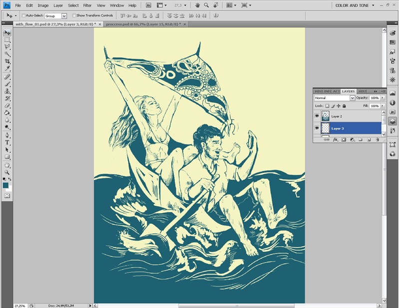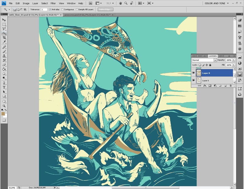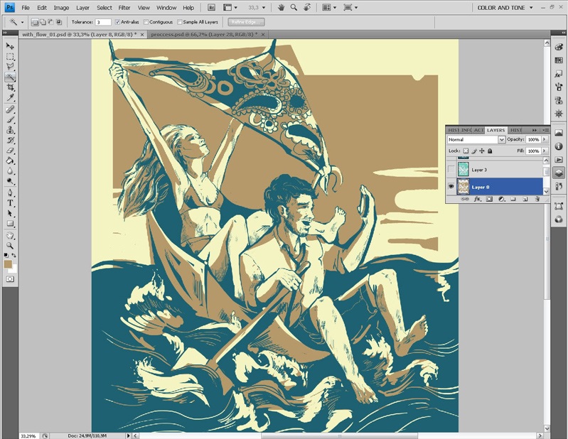 Завершив работу со слоем контура, я приступаю к работе с цветом. И в первую очередь выбираю основной тон изображения.