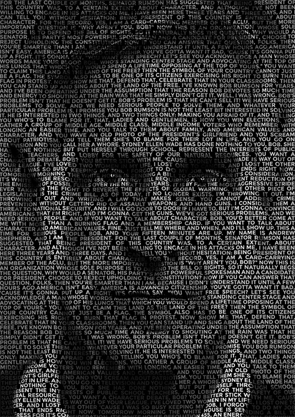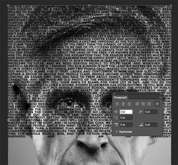 В этом уроке мы создадим эффект портрета из текста, который деформируется под изгибами лица. Этот эффект довольно популярен и называется Calligram. Его использование особенно уместно для оформления цитат и речей известных личностей. Ключевым инструментом в нашей работе будет фильтр Photoshop Displace/Смещение. Именно он позволит нам аккуратно исказить текст по текстуре изображения.