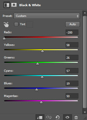 Для слоя с лесом примените следующие черно-белые настройки изображения: