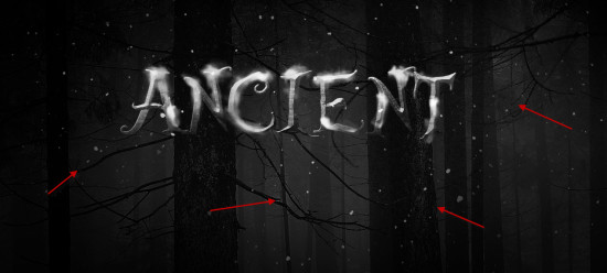 Аккуратно перейдите к тексту и добавьте ему снежный эффект как показано ниже: