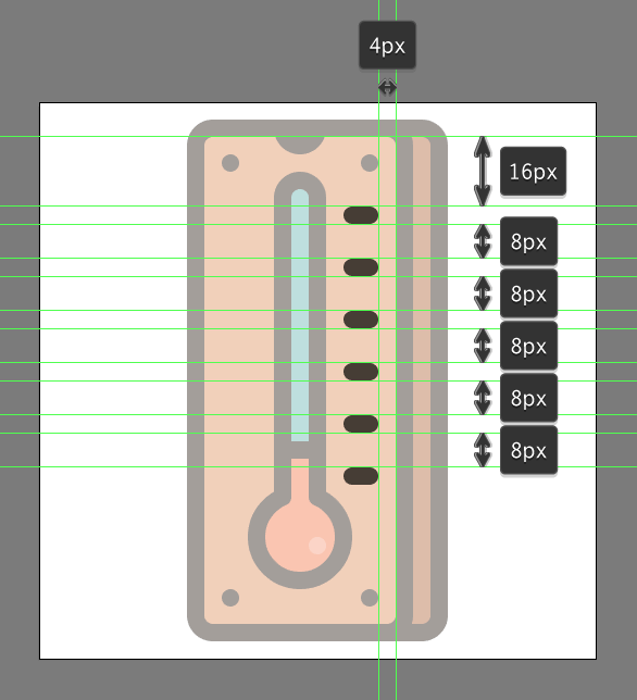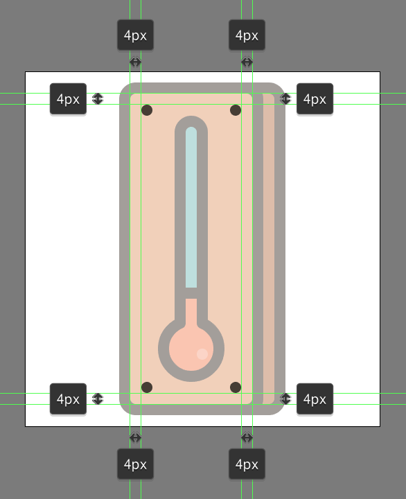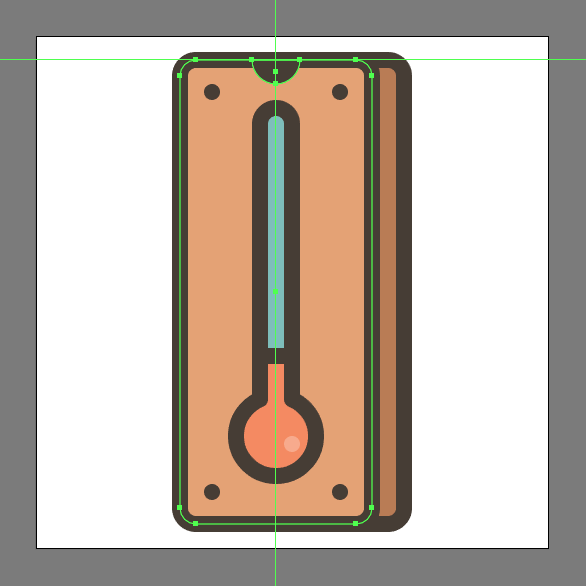 Термометр должен как-то крепиться. Нарисуйте четыре круга размером 4 x 4 px цвета #443A32, и поместите их как показано ниже.