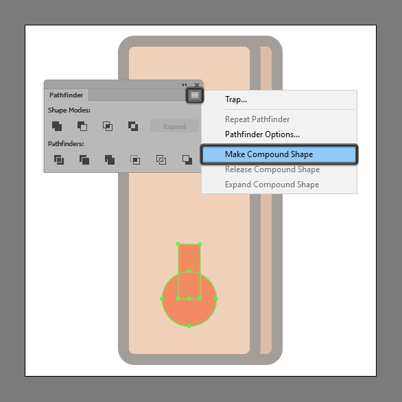 Нарисуйте выемку. Для этого создайте круг размером 12 x 12 px (#443A32), инструментом Direct Slection/Прямое выделение выделите верхнюю точку круга и удалите ее. Поместите получившийся полукруг как показано ниже.