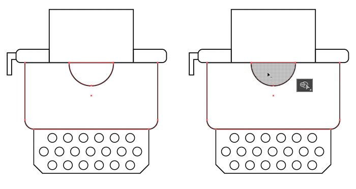 Теперь давайте добавим декоративных элементов, чтобы детализировать нашу работу. Выделите базовый прямоугольник и полукруг, затем дублируйте их (Control-C > Control-F). Не снимая выделения с копий, инструментом Shape Builder/Создание фигур (Shift-M) кликните по полукругу, зажав Alt.