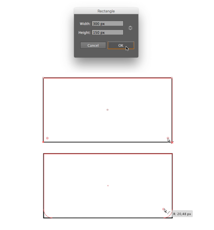 Возьмите инструмент Rectangle/Прямоугольник (M) и просто кликните в рабочей области. В появившемся окне введите размер 300×150 px.