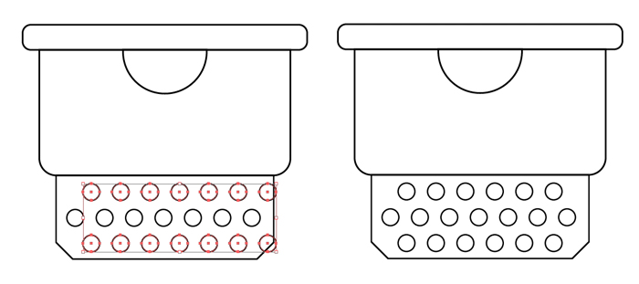 Выделите верхний и нижний ряд и немного подвиньте его вправо. Затем удалите лишние клавиши, чтобы получился узор как на картинке ниже.