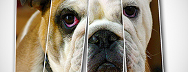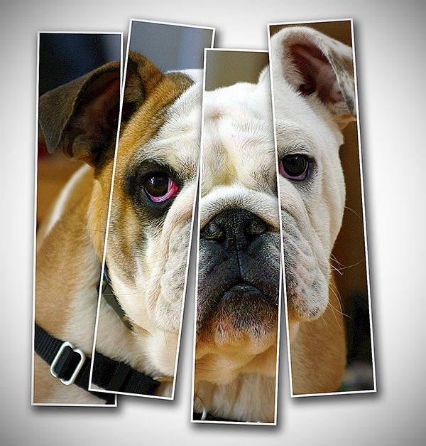 Откройте фотографию собаки или любое ваше изображение. Нажмите Ctrl + A, чтобы выделить все и Ctrl + C, чтобы копировать выделенное. Вернитесь в наш документ и нажмите Ctrl + V, чтобы вставить фотографию. Инструментом Free Transform/Свободное трансформирование (Ctrl + T) немного поверните фотографию, как показано ниже. Мы делаем это для того, чтобы наши рамки выглядели более разрозненно и не менее ровно.