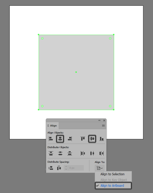 Нарисуйте прямоугольник размером 72 x 72 px и укажите ему цвет заливки #D3D3D3. После этого выровняйте его по центрам горизонтально и вертикально относительно рабочей области.