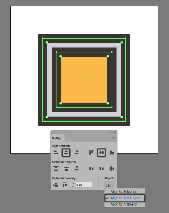 Нарисуйте прямоугольник размером 72 x 72 px и укажите ему цвет заливки #D3D3D3. После этого выровняйте его по центрам горизонтально и вертикально относительно рабочей области.