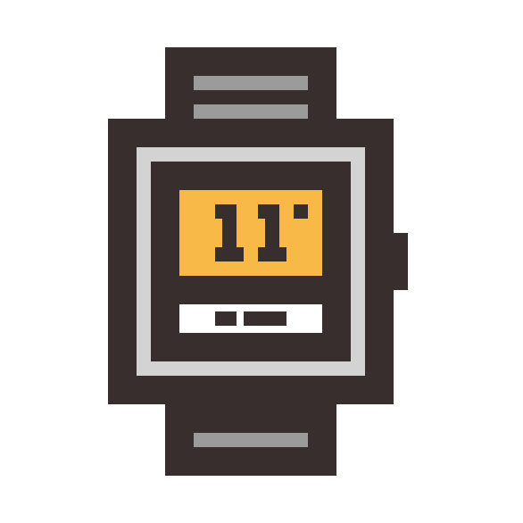 Нарисуйте еще один небольшой прямоугольник размером 4 x 16 px того же цвета в правой части часов. Это будет наша кнопка. Выровняйте его относительно группы, затем сгруппируйте вместе всю работу (Control-G).