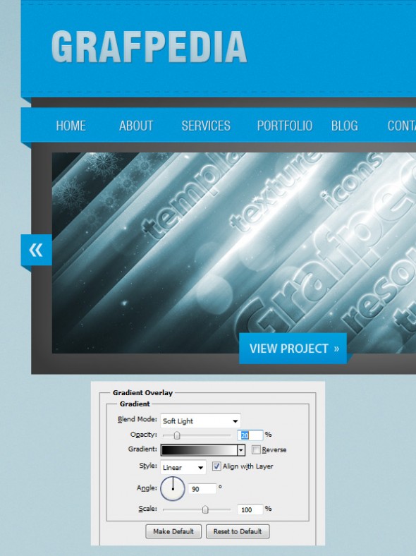 Выберите Type Tool (T) и напишите слово "View Project» ". В примере был использован шрифт Myriad Pro Semibold и цвет # d9e8ee.