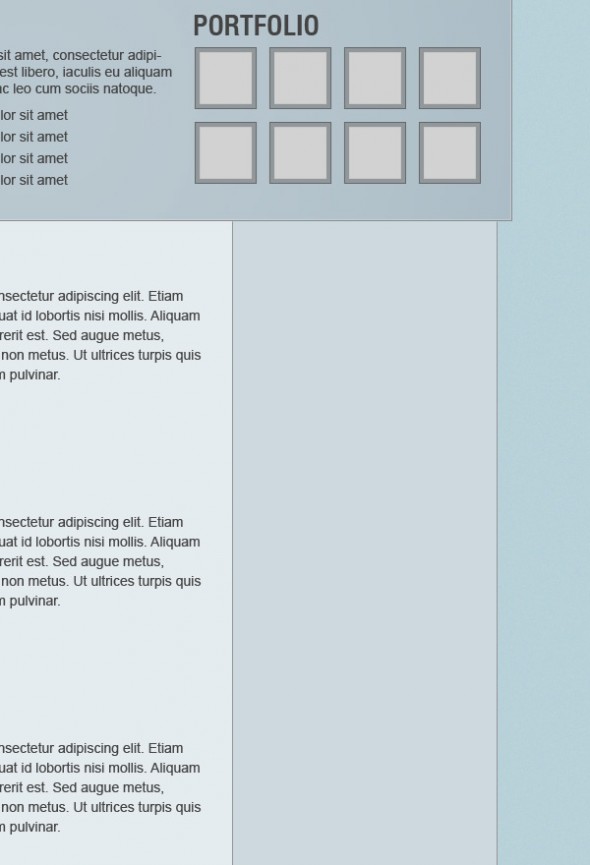 Теперь создаем список для фотографий «Flickr». Выбираем Rectangle Tool (U) и создаем квадрат размерами 65px на 65px. Используем те же стили слоя, которые вы использовали для «portfolio».