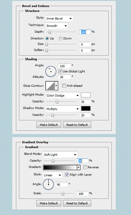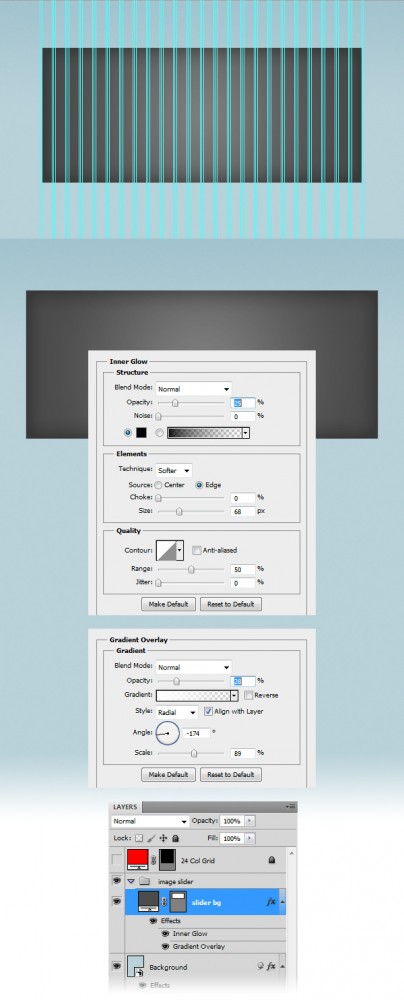 Дважды щелкните на слое «Слайдер BG», чтобы открыть окно Layer Style, и используйте настройки следующих изображений.