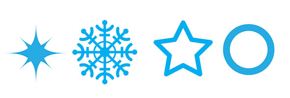 Нарисуйте звезду примерно такого же размера как снежинка и укажите ей отсутствие заливки и жирную обводку, а также скругленные углы. Разберите звезду, превратив обводку в заливку.