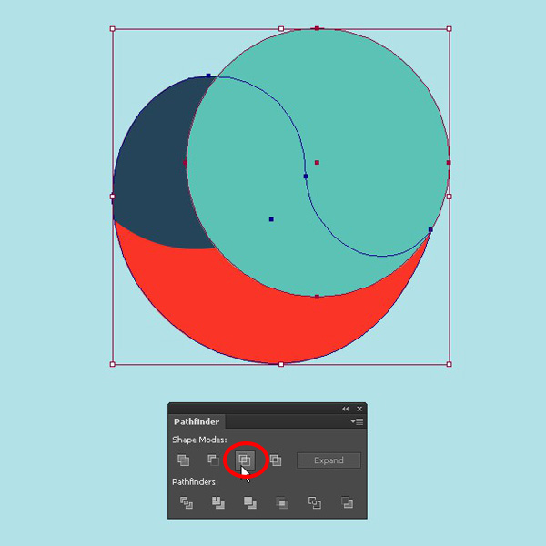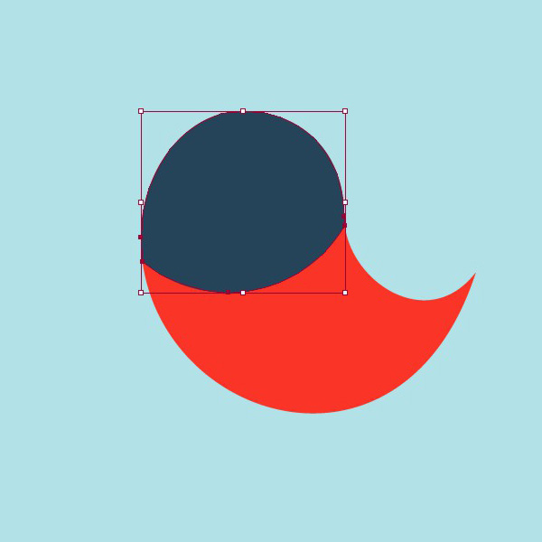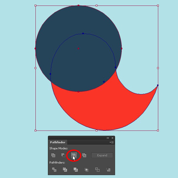 Выберите темный синий цвет из нашей палитры и нарисуйте круг над телом птички. Используйте Intersect (пересечение) в палитре Pathfinder (обработка контуров), чтобы сформировать голову снегиря.