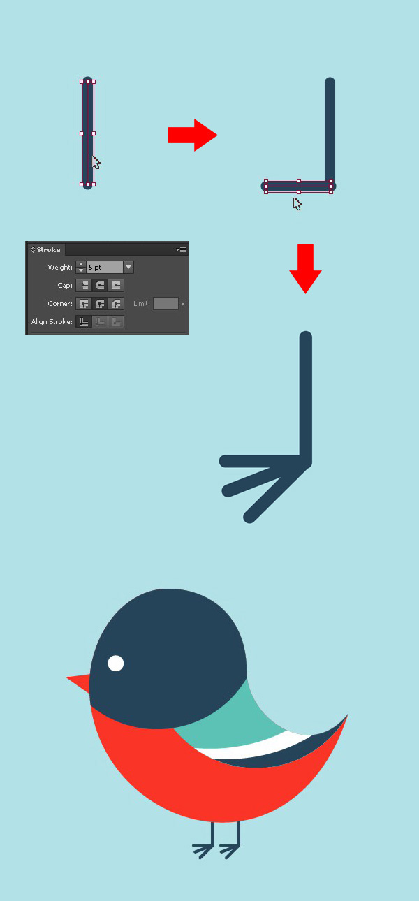 И наконец нам остались только ножки. Используйте инструмент Line Segment Tool (\) (отрезок линии), указав в параметрах Stroke Weight (толщина обводки) в 5pt и выбрав скругленные Cap (капитель) и Corner (угол).