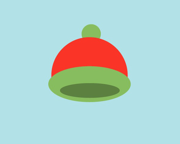 Нарисуйте темно-зеленый овал внутри зеленого овала и маленький зеленый круг в верхней части шапочки, который будет помпоном.