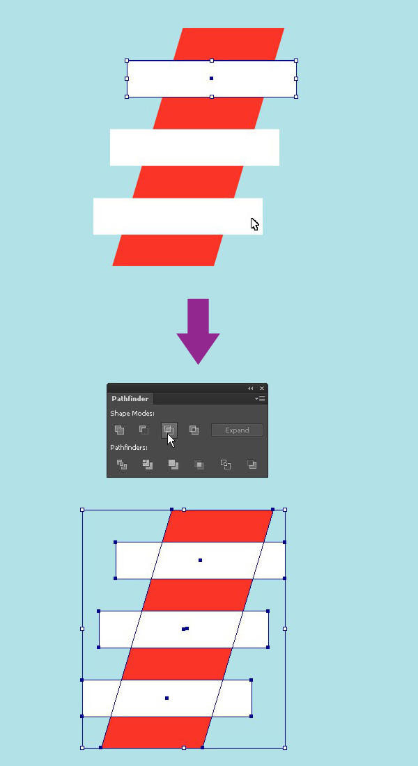 2. Выделите одну полоску и одну копию ободка и в палитре Pathfinder кликните по иконке Intersect (третья слева).