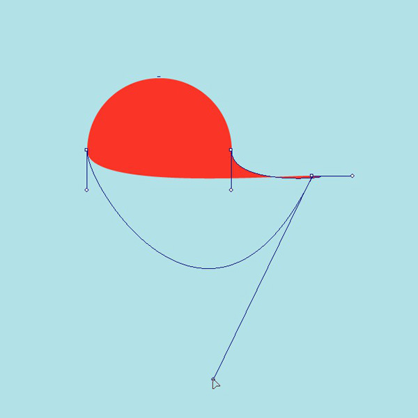 Теперь переместите точку вправо, формируя хвост снегиря. Измените положение манипуляторов, чтобы сделать сгладить форму фигуры.