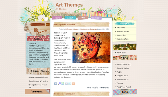 10.  Art Themes. Отличная тема для сайта на WordPress для творческих людей — размещайте работы и рассказывайте о себе.  Демо