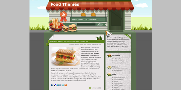 13.   Delicious Foods. Неплохая тема для сайта, посвященного еде — будь-то сайт о кулинарии, блог о вкусной еде или интернет-магазин. Демо можно глянуть по ссылке.