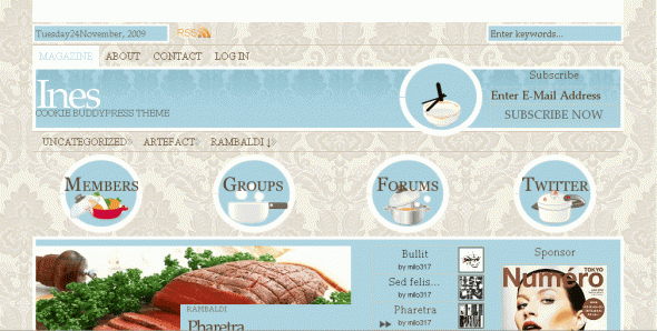 2.Ines Buddypress. Замечательная и стильная тема для WordPress, которая отлично подойдет для различных интерактивных сайтов и с интегрированным форумом, страницей пользователя. Демо